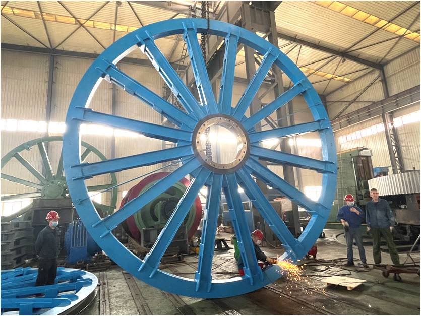 公司返修φ5.5×4m天輪,經(jīng)重型成套設(shè)備廠裝配平臺修整外觀刷漆后,已于3月28日晚裝配完畢。